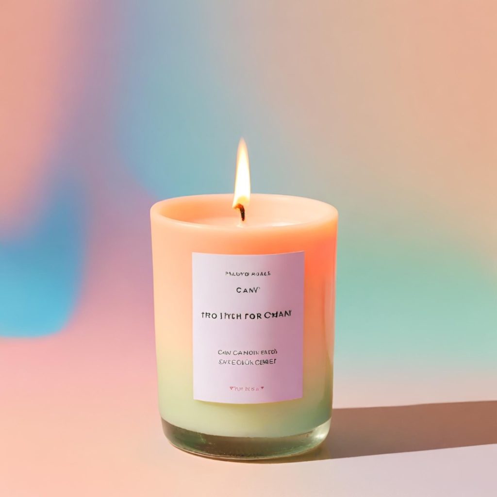 Aktualnie wystarczy wpisać proste hasło, w program tworzący grafikę AI i gotowe… po 5 sekundach mamy fantastyczne zdjęcie produktowe świecy, na modnym, pastelowym tle z kolorowym gradientem.